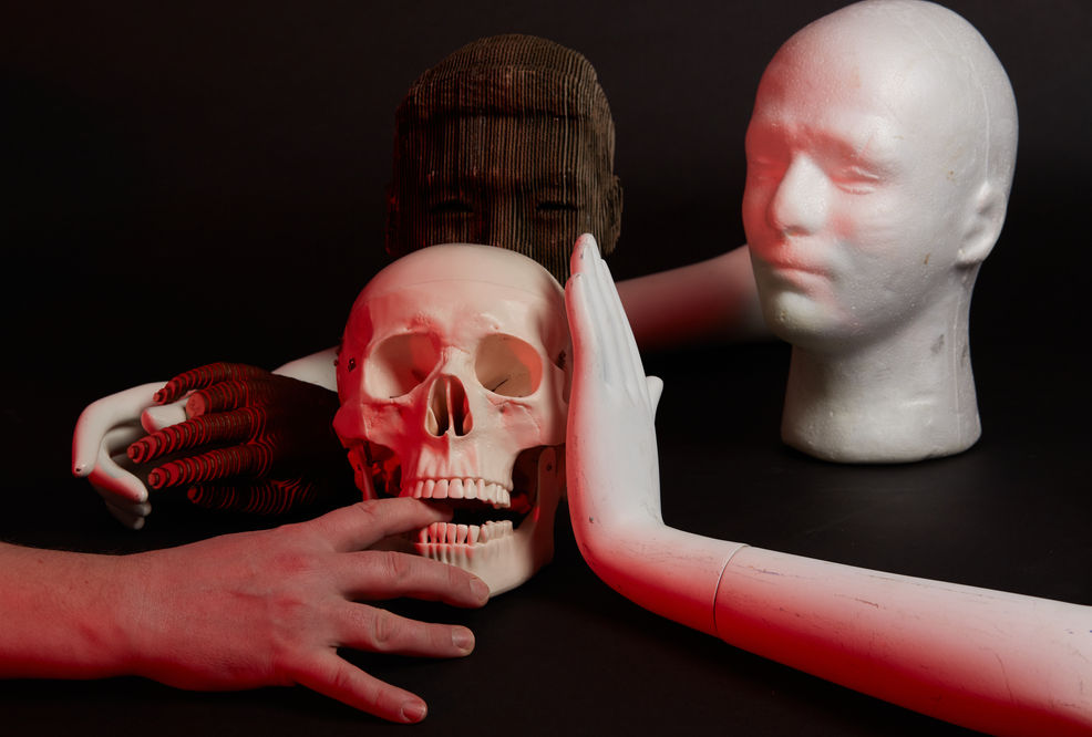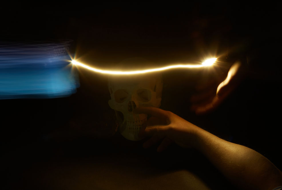 In this lesson we learned how to light objects when photographing them. We practiced using objects we found in the studio, a skull, reflective ball, head sculpt and mannequin hands. The reflective ball gave a cool, distorted perspective as it reflected what was around it in the studio, however this was also difficult cause the lights were also reflecting, making it too bright in specific parts of the photo. After a little while we started playing with long exposure photography, where we had the shutter speed as low as 10 seconds long and we used our phone flashes to create patterns. This was interesting because the only thing the camera sees is what is being lit or the path the light took.